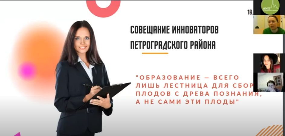 4 апреля 2022 года с лицами, отвечающими в образовательных учреждениях Петроградского района за инновационную деятельность, было проведено плановое совещание.